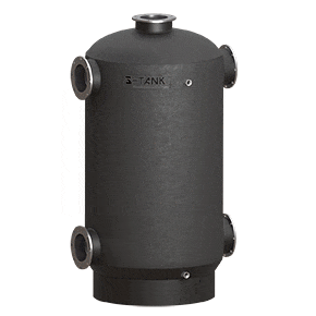 Бак предназначен для аккумулирования холодных жидкостей от различных источников, и построения систем холодоснабжения. Его отличительной чертой является наличие фланцевых подключений большого размера (от ДУ 50 до ДУ 300) (опционально можно заказать резьбовые патрубки). Бак S-TANK серии СT улучшает гибкость системы охлаждения, и является гидравлическим разделителем контуров системы. Хорошо сочетает следующие источники холода: