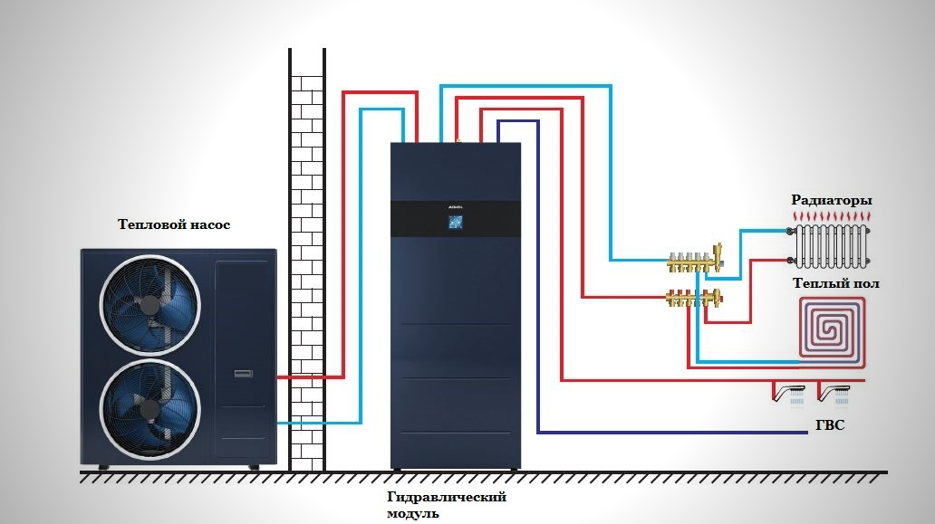 - Два типа накопительных емкостей: буферный бак для стабилизации работы режимов отопления и охлаждения, а также специализированный бак для подготовки бытовой горячей воды (ГВС).